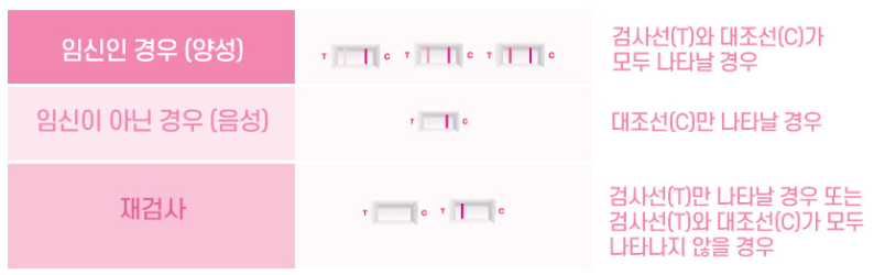 - T선(검사선): 임신 여부를 확인하는 선입니다. C선과 T선이 모두 나타나면 임신을 의미합니다.